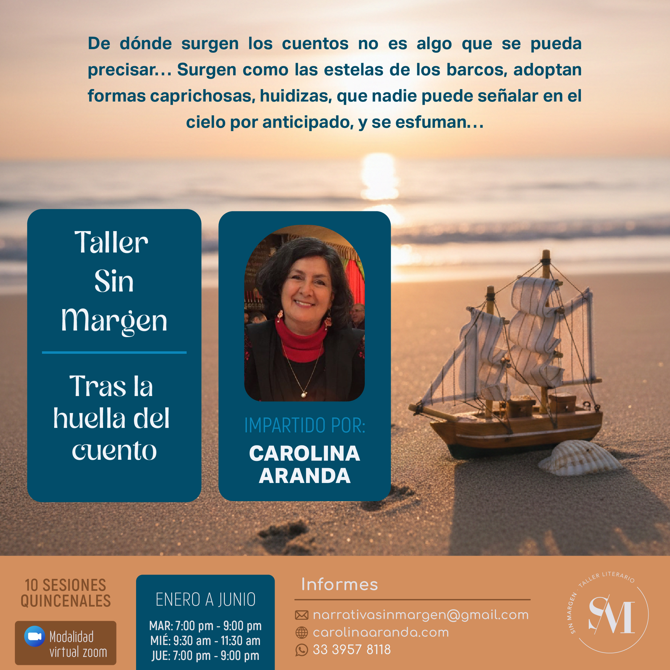 Muy contenta de volver a trabajar con ustedes, escritoras y escritores que acompañan mi asombro con sus historias, con sus titubeos y logros, con su sentido del humor o su sentido de la tragedia.